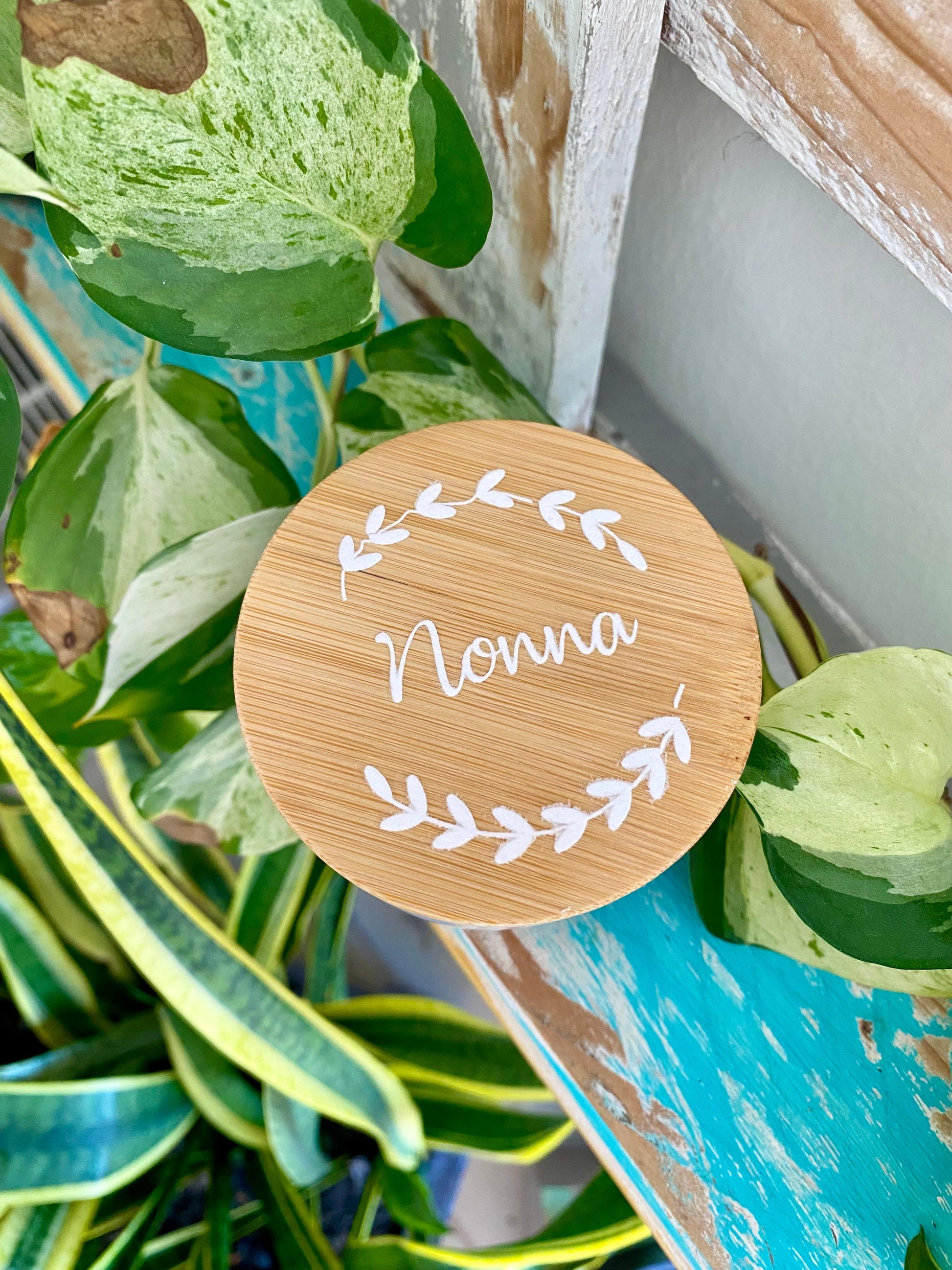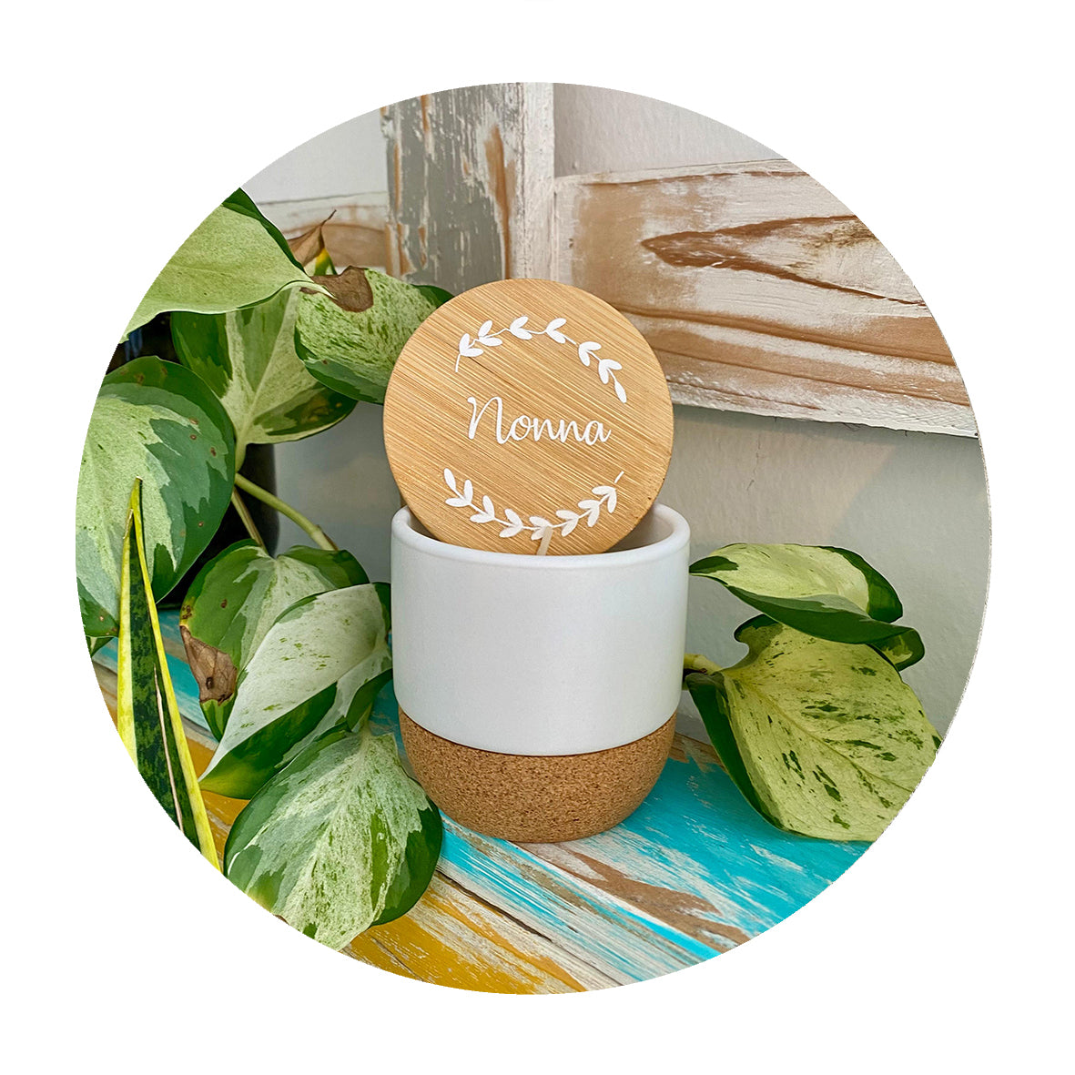 Candela cera di soia, profumazione vanigliata, tappo sughero personalizzabile con scritta.