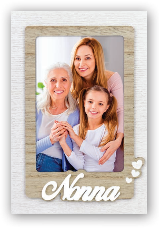 Portafoto in legno bianco con scritta Nonna e cuori sagomata intagliata