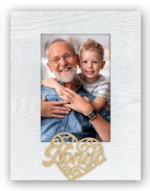 Portafoto in legno bianco con scritta Nonno e cuori sagomata intagliata
