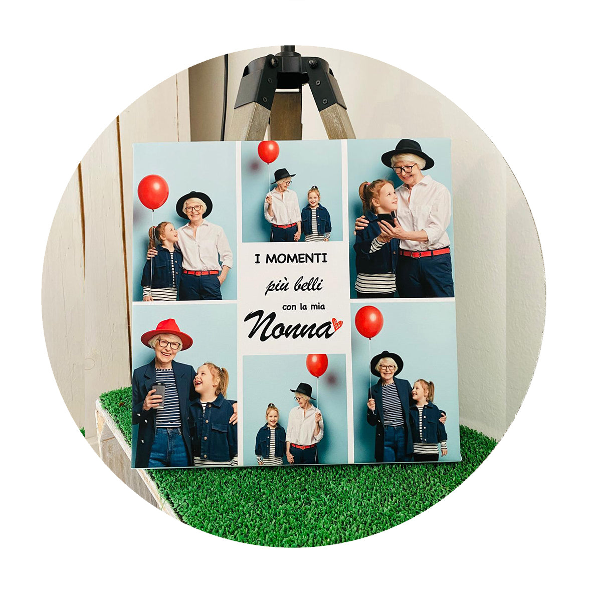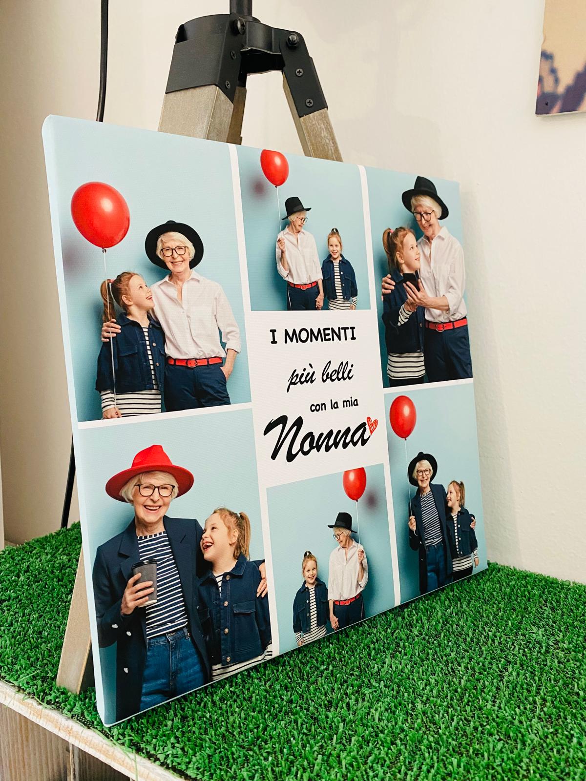 Stampa su tela canvas ultra hd con telaio in legno. Collage 6 foto e dedica centrale personalizzabile